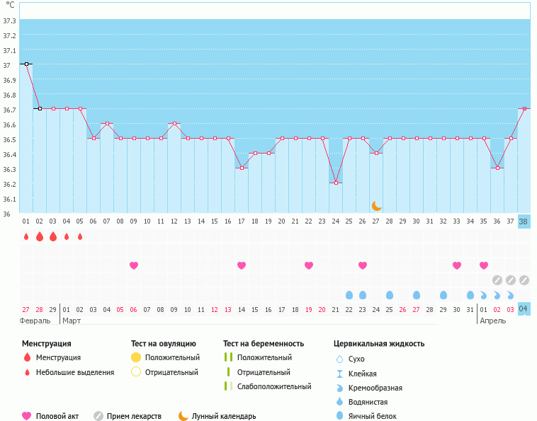ФолликулометрияПМ были 27 февраля, цикл 24-26 дней, на сегодняшний день задержка 12 дней. Весь цикл мерила БТ, овульки по БТ так и не было. Вот мой график на сегодняшний день