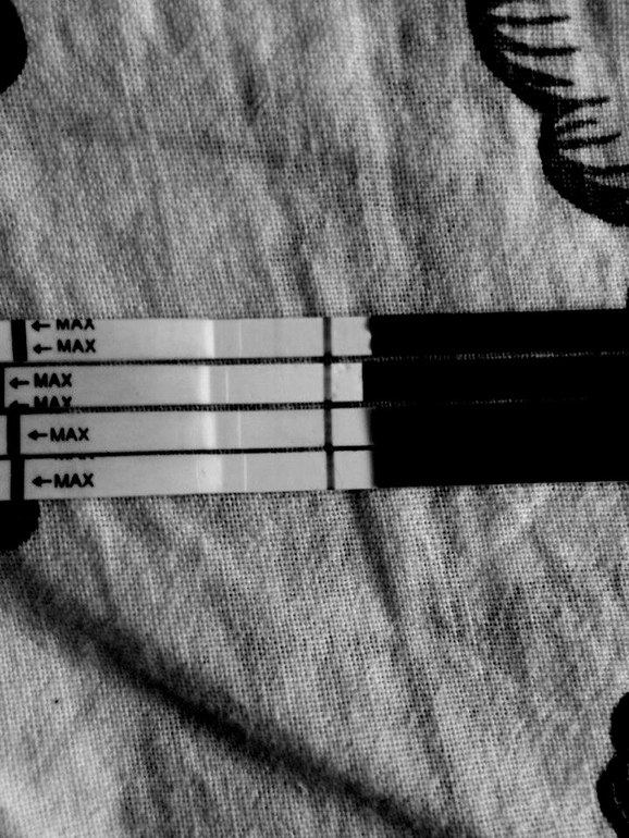 День Х наступил!в пятницу вечером(12 дц) вторая слабенькая полоска появилась в течении 5 минут,в субботу утром(13дц) она еле видна была.вчера соответственно еще еле еле заметнее стала.и сегодня утром-что то взгляд цепляет но уже так себе.что же это?сегодня 1 дз/35 дц(свой цикл у меня 30-32)-овуляция была приблизительно на 20 дц .на фото не все видно