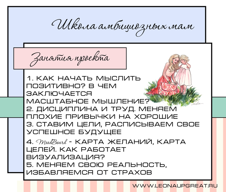 Я решила запустить социальный проект на лето, чтобы мы смогли вместе идти к цели, в кругу единомышленников, перезагрузиться и немножко сменить обстановку, проект абсолютно бесплатный "Школа амбициозных мам"