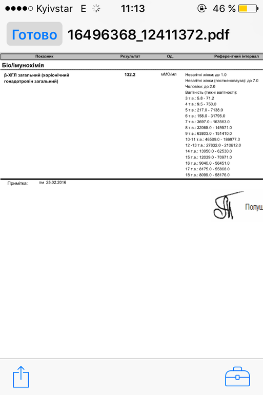 Ну вот вчерашний анализ готов. О была числа 26-27 марта где-то. То есть на данный момент это 2,5 эмбриональной недели. Судя по результату даже не 3, а все 4!!!😨
