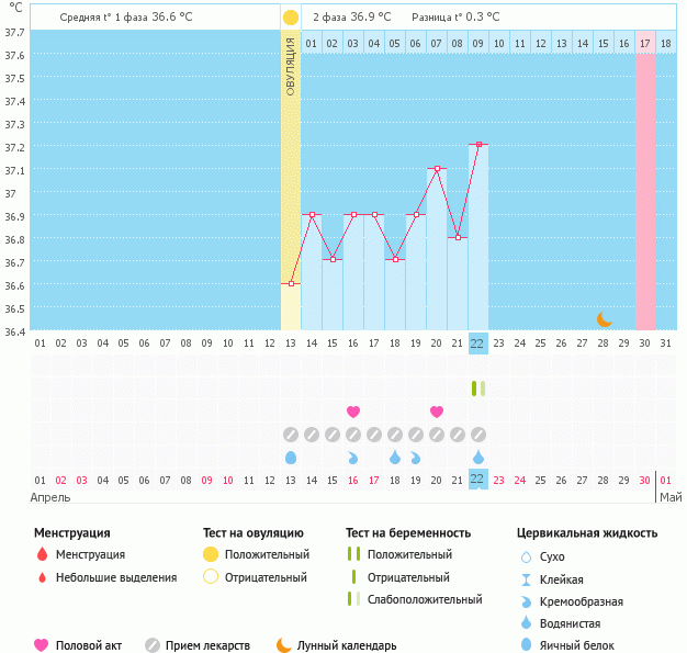 Мой график базальной t°, цикл от 1 апреля 2016