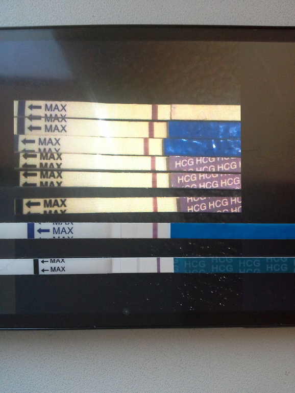 а вот получилось. Помоему первые три теста это 7 дпу, потом 3 дня пустые, а уже на 10 день еле видная полоска.