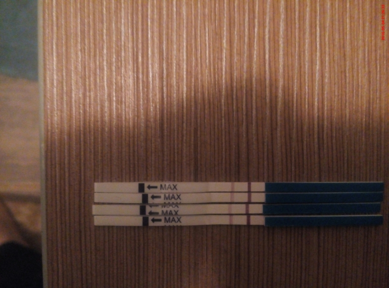 Девчонки,решила делать пока тесты.Первые два теста сделаны вчера под вечером, предпоследний скглдня утром,а самый нижний около часа назад.Мне кажется или они ярчают?