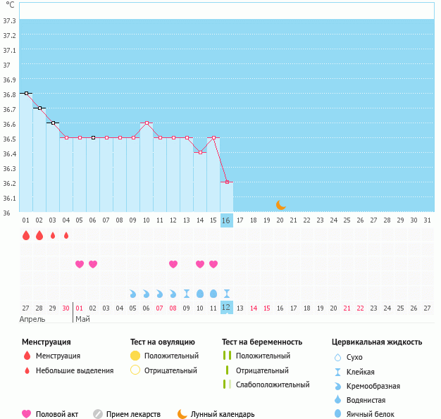 На мое заявление, что, судя по моим ощущениям, выделениям и БТ, которая сегодня грохнулась аж на 0,3 градуса (график ниже), О может быть сегодня. Врач "рассматривая" меня, сказала, что в пя дф 13 мм и "может О уже была и он уже сдулся". Я не поняла.... если он "сдулся" то это ж когда должна была быть О (бт до сегодняшнего дня держалась на одном уровне)??? УЗИ на 9 дц показало несколько небольших фолликулов в пя. А Сегодня дф 13мм. Какого же размера у меня фоллик считается доминирующим и овулирует.... Эндик, кстати, отличный -12 мм!!!