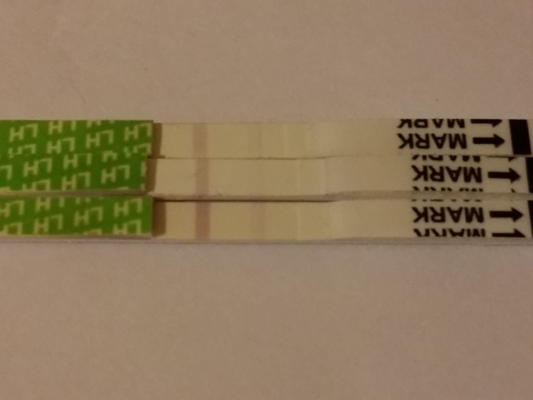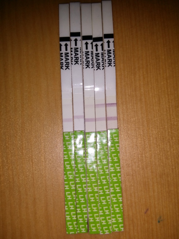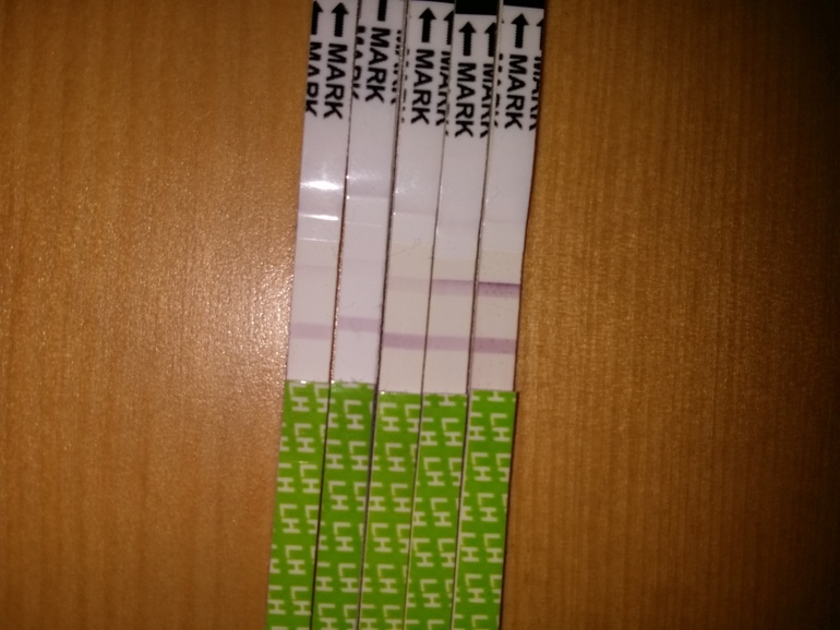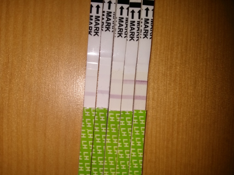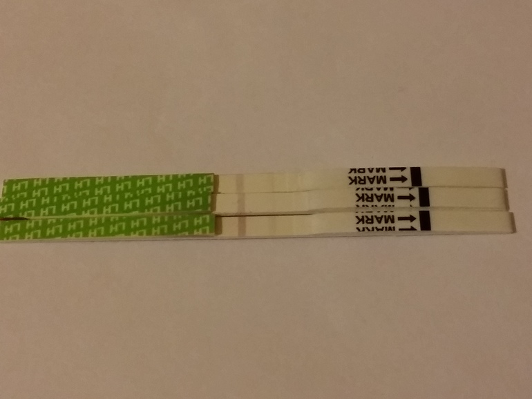 Овуляция( тесты на овуляцию)Давно их не делала, этот фрау тест. Сверху вниз 11,12,13 день цикла. Добавила 14 и 15 день