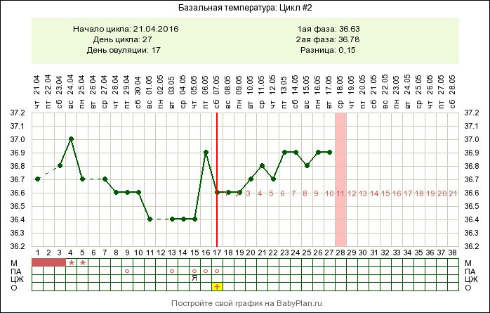 поставьте не учитывать температуру на 4 дц и на 16 дц и увидите реальные цифры. еще у вас во время м высокая бт, у вас все нормально с эндометрием?