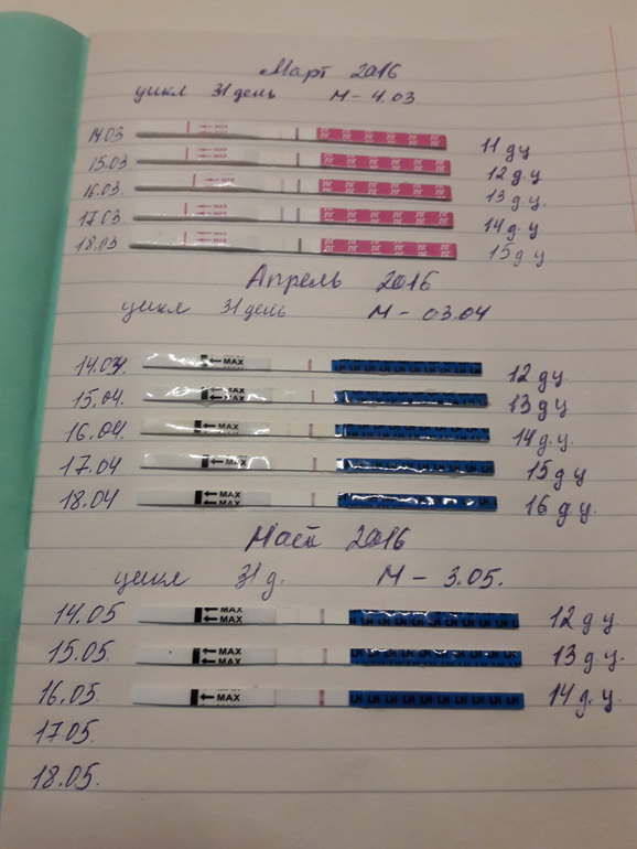 Судя по тестам в марте была овуляция, на остальных затрудняюсь сказать) я тестами никогда не пользовалась, доверяю своим ощущениям и фолликулометрии. Можно предположить, что овуляция у вас не на 14 дц, а гораздо позже, поэтомв и тесты не яркие. Либо дюфастон просто ее блокирует, насчет этого, кстати, противоречивые мнения.