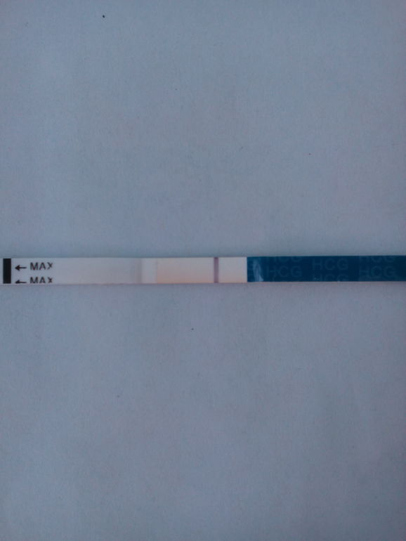 а через два дня я вспомнила что у меня скоро М но у меня совершенно не болит грудь(чего никогда не было), вчера сбегала за тестиком и сегодня утром сделала(но муж спугнул, я его за раковину закинула и пошла дальше спать) а примерно через 40мин когда муж ушёл на работу и увидела призрак(первый раз, в жизни его лучше видно)