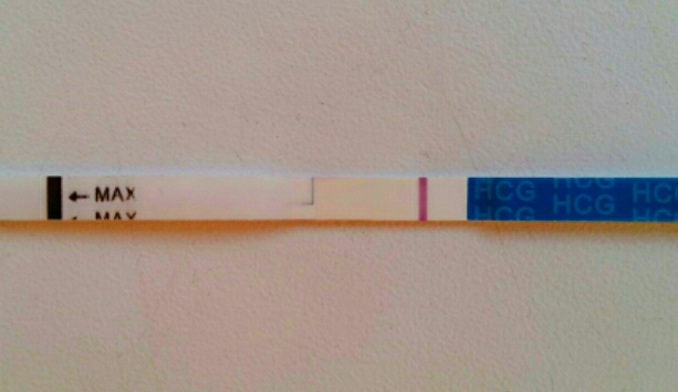Я вижу белую полоску, а по краям остатки реагента. Скорее всего просто рано! Желаю увидеть //