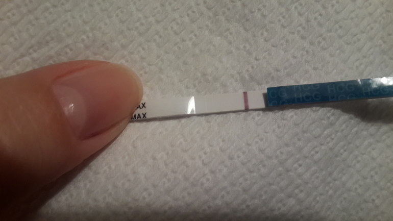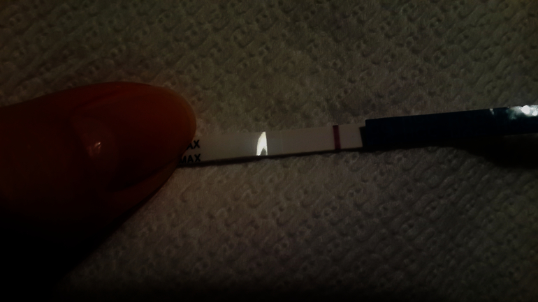На затемненном видно, но это просто реагент, причем на многих тестах так выдает. Полоску даже самую бледную вы увидите