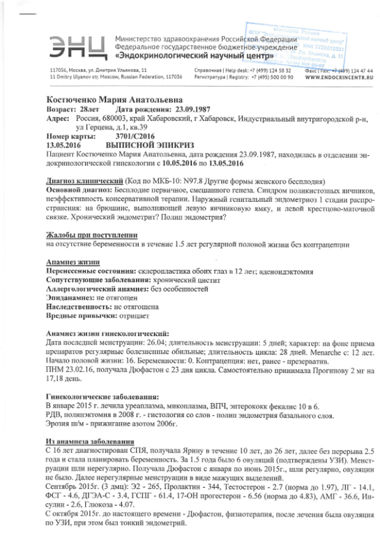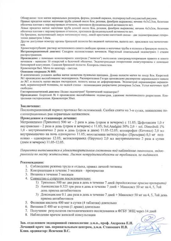 В общем наконец забрала я гистологию... И совсем запуталась. Все в порядке. Нет эндометрита и про полип тоже не написано... Позвонила ординаторше, спросила а был ли он вообще. Сказала спросить у врача. Сказала, что судя по заключению все там хорошо. А если что то и было то убрали =/ короче я запуталась.... И теперь не знаю почему я все еще не Б, если полипа не было. И был ли он вообще. Потому что в заключении в больничном указано про удаление полиповидного разрастания. Короче кроме СПКЯ (с периодическими овуляциями) и небольшого эндометриоза у меня больше ничего плохого нет. Буду считать, что Б не получалась из-за фоликов переростков (перезрелость Я) и недостаточного эндометрия. Других причин я не вижу...