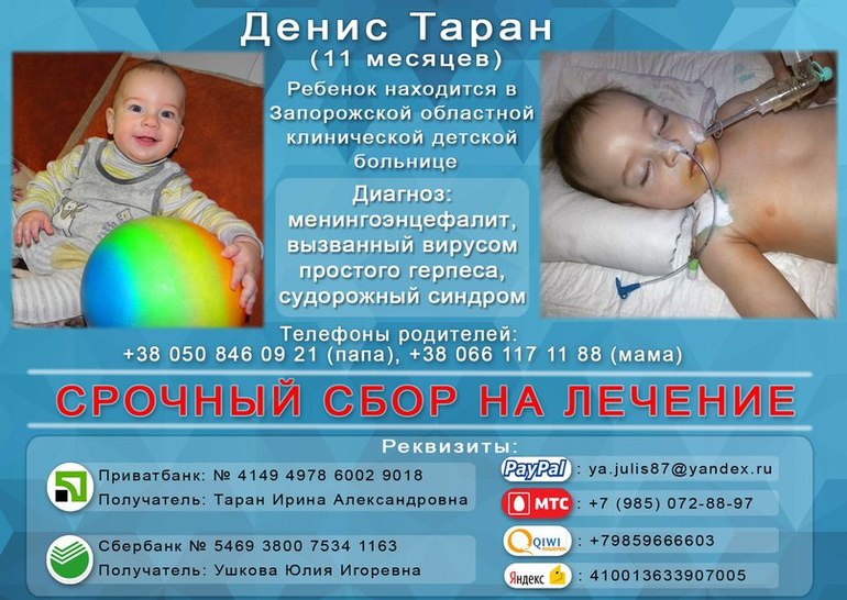 Люди и правда мало откликаются,сейчас денег нет ни у кого ,но как говорится с миру по нитке.Ужас ,даже не думала ,что от простого герпеса такое может быть.
