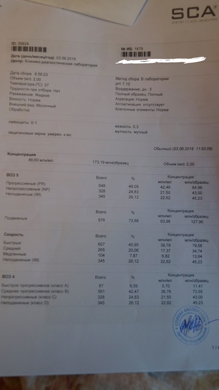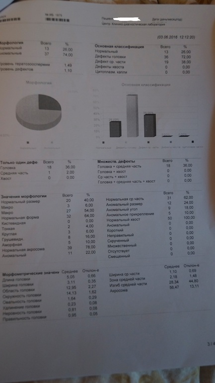 Супруг сдал спермограмму, сегодня получила результат,очень волнуюсь. Я так поняла что делался анализ на спермоанализааторе. МАР тест отрицательный. Не могу понять по подвижности:приведена просто скорость, ВОЗ 4 и ВОЗ 5. По ВОЗ 4 печально ... Морфология-нормальные формы 26% (считаю, что мало, вообще там куча каких то парметров, в которых я вообще ничего не понимаю). PH 7.1 (меньше нормы). Далее под кат. Очень прошу, не пройдите мимо, жутко переживаю..