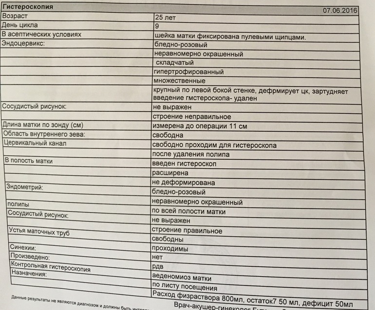 Результаты гистероскопии
