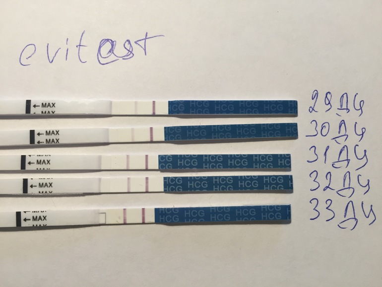 В мае снова я пришла к своему гинекологу, сделали УЗИ , все хорошо. Планируется овуляция в правом яичнике со стороны сохранной трубы. Гинеколог даёт добро! Мы планируем, пьём витаминки, я думаю только о хорошем.. 17 июня у меня юбилей.., так мечтала увидеть самый заветный подарок в виде // на утро. И каково же моё удивление, когда я вижу на тесте эту вторую полоску, но оооооочень слабую, еле заметную, как тогда, в декабре... Меня накрыло по понятным причинам, побежала сдавать хгч. Мониторила каждые 48 часов. В итоге динамика такая: