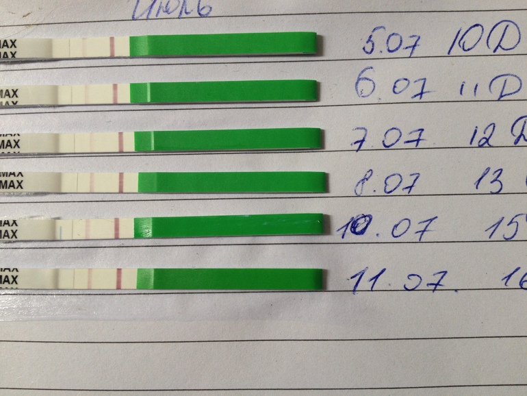 Я в этом месяце пользовалась ими.Честно,сама ничего не пойму.У меня были такие полосочки,как у вас на самом нижнем,четыре дня подряд,потом вчера вот только тестовая стала немного ярче контрольной.Но что то О не ощущается.А у вас вроде как растет,чем дальше,тем ярче.Скорее О еще не было.Хотя,я где то читала за них от тех девочек,которые делали тесты эти на О почти весь месяц,так как цикл не нормальный,так вот,у них этот тест 2 раза за месяц О показывал.