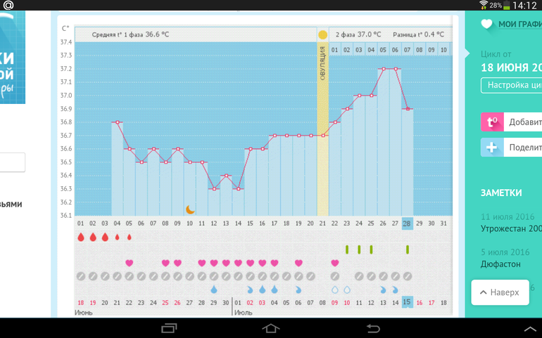 Я вчера жаловалась, что темпа не растет с утриком, а сегодня 37.1 (была 36.8)! Вообще не понимаю пока что, как он действует..