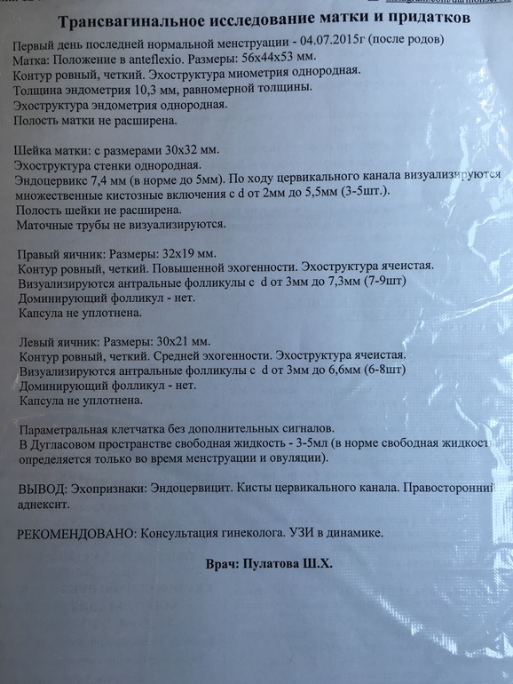 Родила дочку чуть больше года назад, мы на усиленном ГВ, месячных нет. Весь этот год не предохранялись, хотим еще ребенка. 2 месяца назад делала УЗИ, эндометрий был 5.5 мм. Сказали что к месячным ничего не готово. Вчера еще раз сделала - эндометрий 10.3, но меня смущает что размер фолликулов почти одинаковый на обоих УЗИ, и какие то слишком большие. Узистка сказала чтоб я ждала месячные. Что-то не понятно. И свободная жидкость постоянно фигурирует на всех УЗИ в течении года. Врачи ничего по этому поводу не говорят. Девочки посмотрите пожалуйста, может у кого-нибудь было так? Всем спасибо)