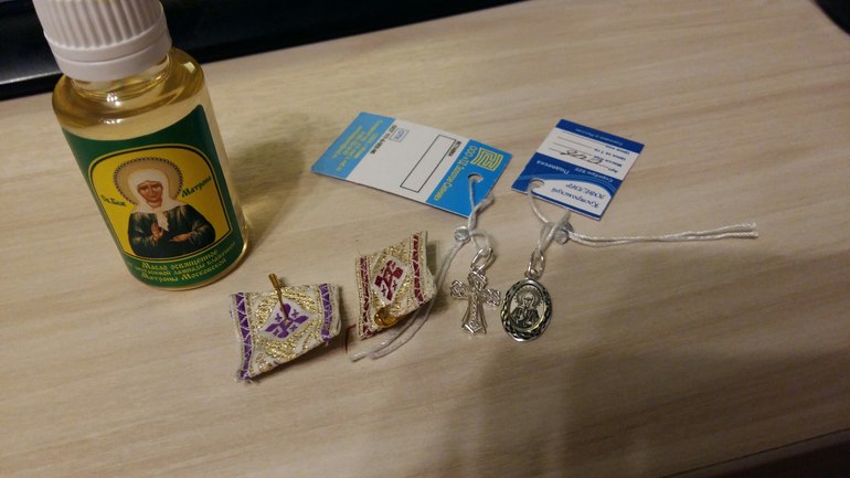 Набрали водичку, в лавке купили две ладанки, масло и свечи. Еще выбрала себе крестик и иконку с Матронушкой.