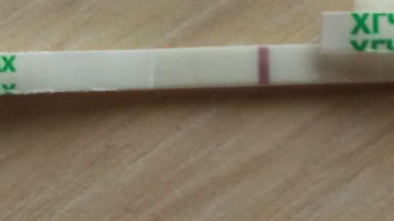 У меня тоже такой тест был, как будто черточка с краю. И я думала реагент, а на след.день сделала эвик и сразу вторая розовая полосочка появилась. Удачи вам. Пусть это будет оно!!!