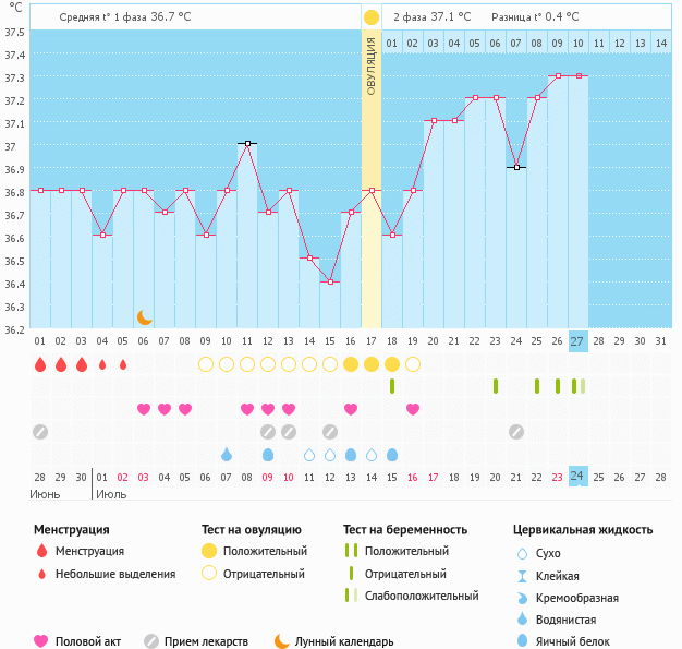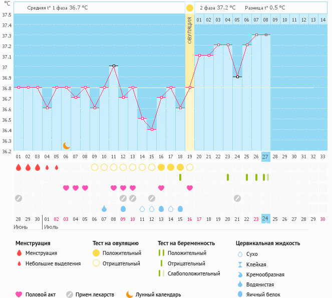 Кинула я график БТ в сообщество, где девочки посоветовали убрать овуляцию по УЗИ, чтоб график выставил сам. Так и сделала, пишет мне, что она была 16 июля, т.е. на 19 ДЦ...