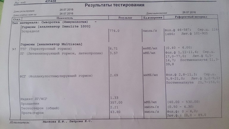 Все в норме, кроме ттг - нужно сдать т4 свободный. ЛГ, ФСГ, эстрадиол информативны на 3-5 день цикла!