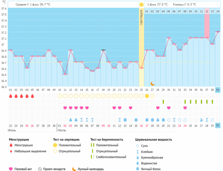 Сегодня мерила бт так: проснулась в 4:30, померила-37, встала к сыну, уснула, проснулась в 5:30, встала к сыну, напоила его, померила, 36,8. Но я вставала и градусник сбрасывала, поэтому поставила первую в график. Днём померила бт 38, температура тела 36,9.