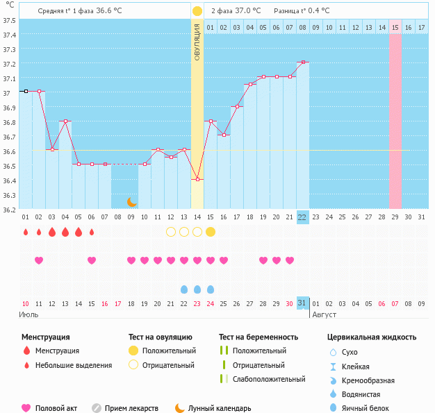 У меня тоже цикл начался 10 июля, и график на ваш очень похож )) Может и получилось!