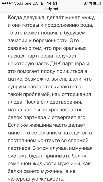 Я тут подумала, девочки! Че мы все паримся над зачатием ( гистероскопии, лапароскопию, вечные тесты, куча анализов) Проблема нашлась!!! Спасибо тебе ,добрый человек, за научную статью! Минет поможет!!! Мой муж сегодня будет счастлив!!!
