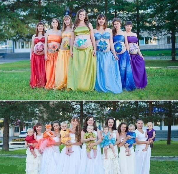 Это нужно городской клич здесь устроить и собраться группой с девочками-пузяшками) Тогда такое фото и получится