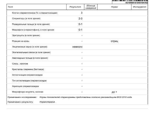 Отлично!! Пусть эта спермограмма с маминой клеточкой поможет родить здоровых малышей!