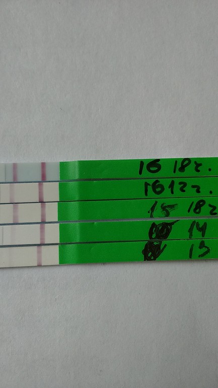 Вчера тест на О в 18 часов вечера очень яркий...сегодня в 12 был менее ярким...СЕйчас делаю тест-он стал опять ярким...ну чудеса...чего там в организме не пойму...и вообще когда тогда овуляция сама...кошмар...-вот как без узи тут разберешься...( Сегодня по идее я должна ставить уже утрожистан (с 16-25 дц)....