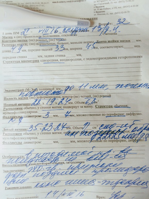 И помогите, пожалуйста, расшифровать текст. Не пойму, что написано про левый яичник и признаки чего в заключении.