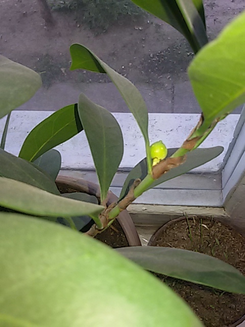 Вот эта зеленая горошина, как выяснилось, и есть цветок. За четыре года его жизни со мной, это в первый раз. Наблюдаю за "какахами", вдруг вырастут или откроются))
