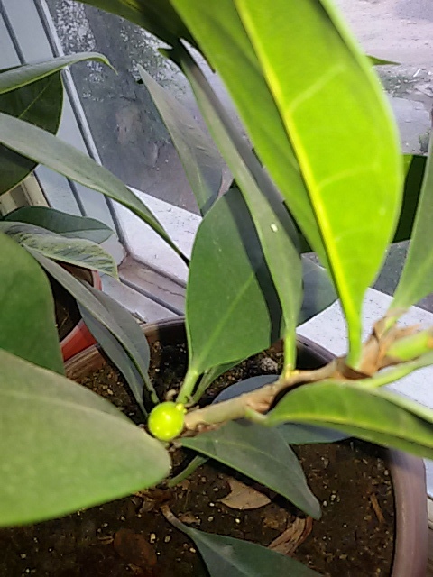 Это не лимон, это одна из разновидностей священного фикуса. В цветочном магазине, где покупали, было два их вида- один с круглыми листьями, другой- с длинными. Вот он мне больше понравился, я его и взяла. У меня вообще фикусов 6 видов. И Бенджамина тоже есть, и лимон тоже)). Бенджамина, кстати, цветет точно такими же плодами, которые краснеют потом.