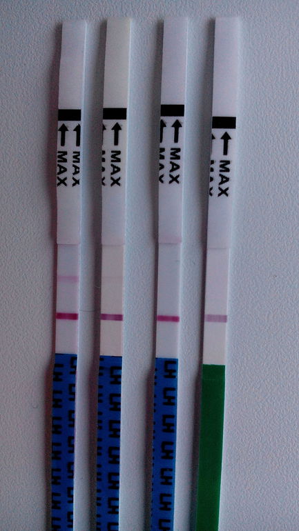 Я вот по таким тестам тоже ничего не понимаю. Простите, что вклиниваюсь не совсем по теме вопроса, т.к. не смогу помочь определить наступление О по таким тестам, просто хочу посоветовать купить любой электронный тест. Они подороже, зато 100% показывают верно, т.к. сами запрограммированы на свои показатели как надо.