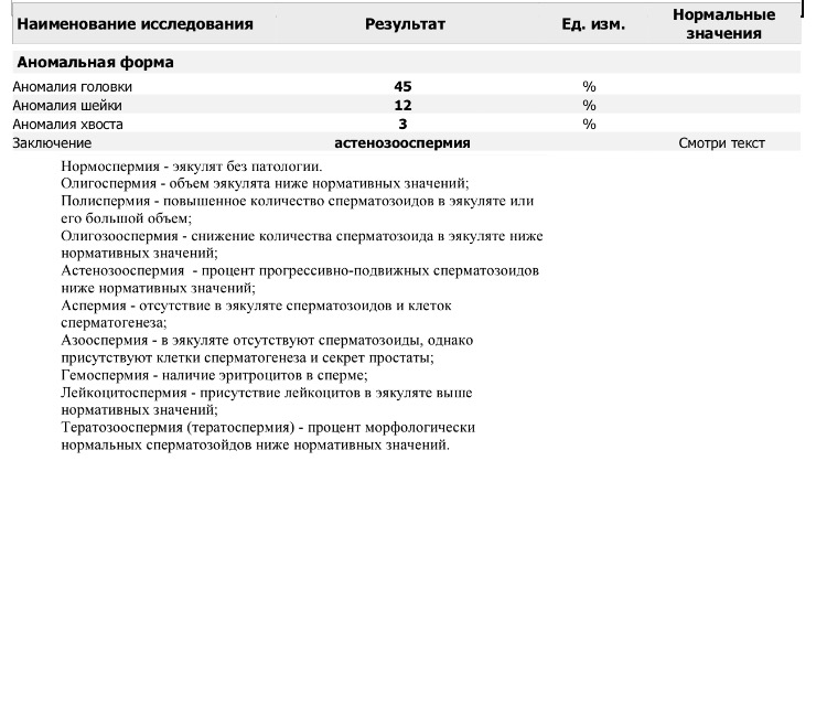 Девочки подскажите, что за гадость агглютинация сперматозоидов(склеивание)? Пришли результаты спермограммы у мужа, обнаружили эту хрень...У кого такое было, чем лечили и вообще какие варианты с этим зачать ребенка?Помогите расшифровать спермограмму, фото скину в комментарии....И что это за аномалия головки 45%, шейки 12% и хвоста 3%?