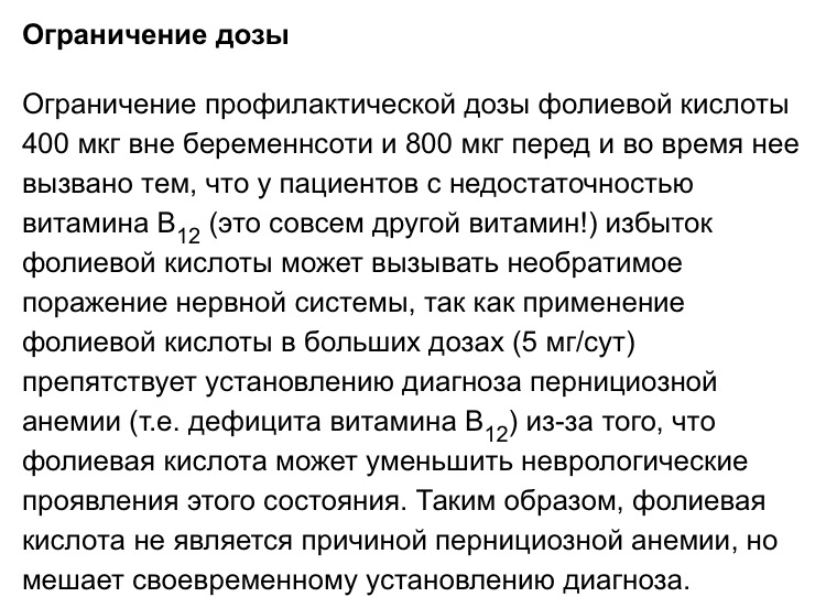 Поэтому лучше пить фольку вместе с В12. А избыток фолиевой кислоты выводится из организма, так что передозировки не будет.