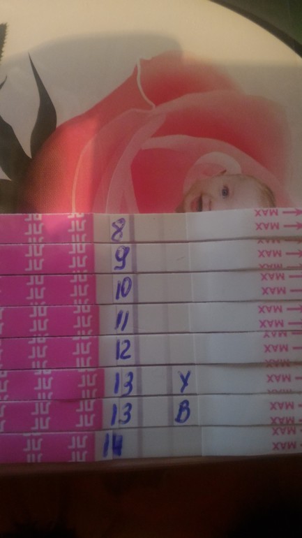 Овуляция( тесты на овуляцию)Девчонки, помогите рассмотреть тесты на О. Была ли она или всё-таки этот цикл ановуляторный? Тестами этими пользуюсь впервые, поэтому не могу на них ориентироваться точно, обычно вторая у меня ярче контрольной, а в этот раз вот так... Вчера как раз и был этот 13 день и очень много арбуза... может ещё это повлияло на окраску... БТ не мерию в этом цикле.