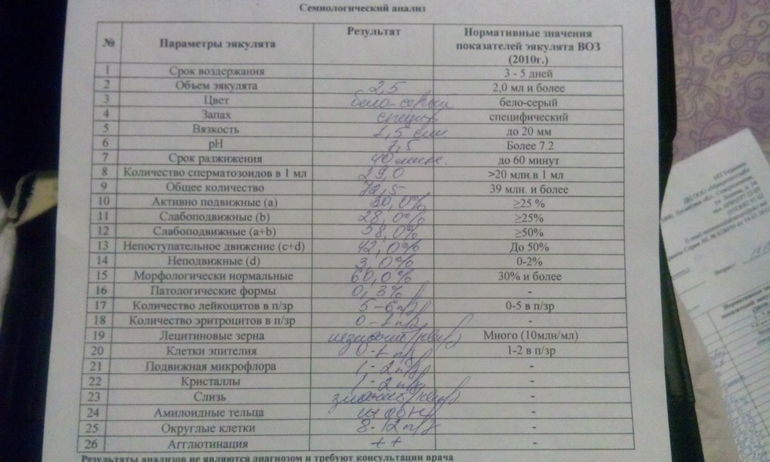 Девочки,посмотрите спермограму пожалуйста....в заключении нормозооспермия и лейкоспермия. Насколько лейкоспермия препятствует беременности? И смущает агглютинация ++......пол года назад этого не было,сейчас месяц принимал Трибестан плюс для улучшения подвижности