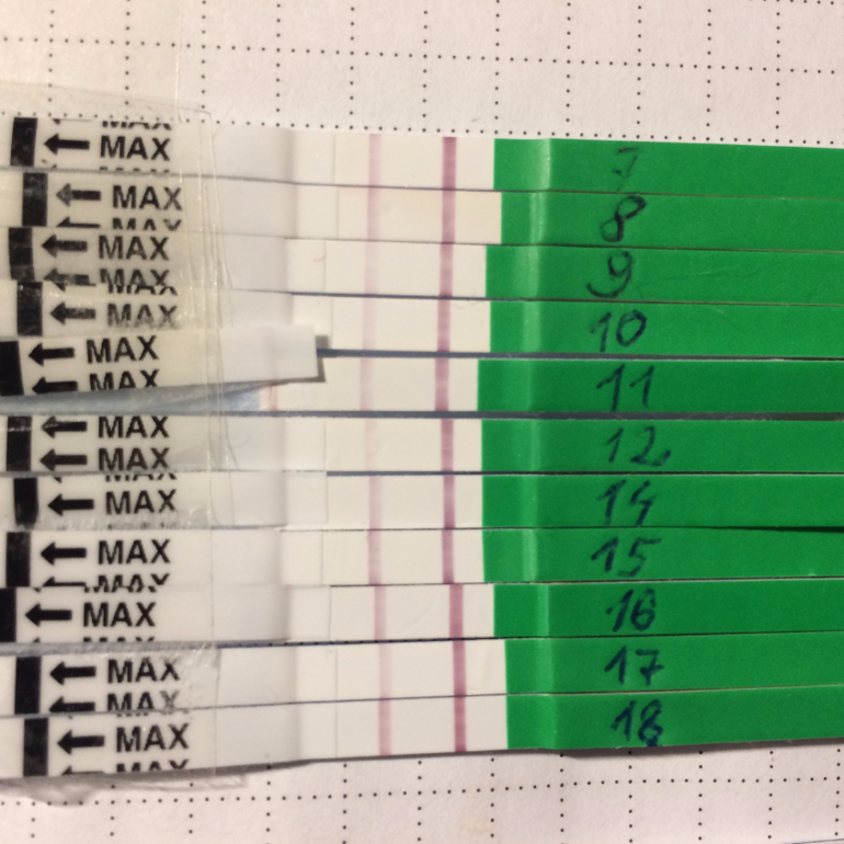 вы зря тестите один раз в день лучше мониторить день-вечер,так точно не упустите ее... она могла быть в ночь с 17 на 18 дц,к примеру