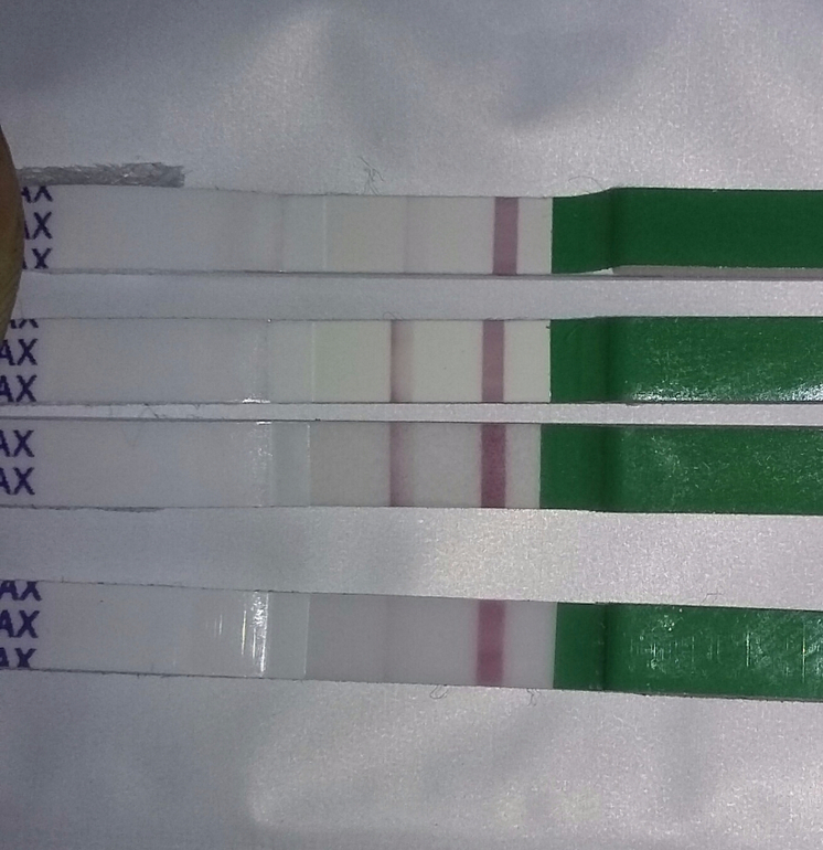 А тесты овуплан? Просто по вашим тестам не понять, в овуляцию полоска жирнее должна быть, как контрольная, а у вас она бледнее, да и скачек резкий, а на след.день почти не видно полоски, как то странно, сколько мочила их они постепенно ярчали, а потом бледнели не резко