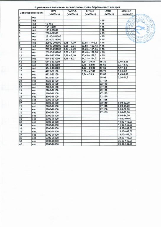 Вот таблица. Это от лаборатории, где сдавала и буду сдавать хгч.