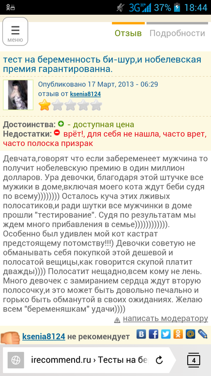 Покупаю его уже много лет, ни разу не соврал. Когда б не было был чист, когда Заб. показал 2 ярких полосочки