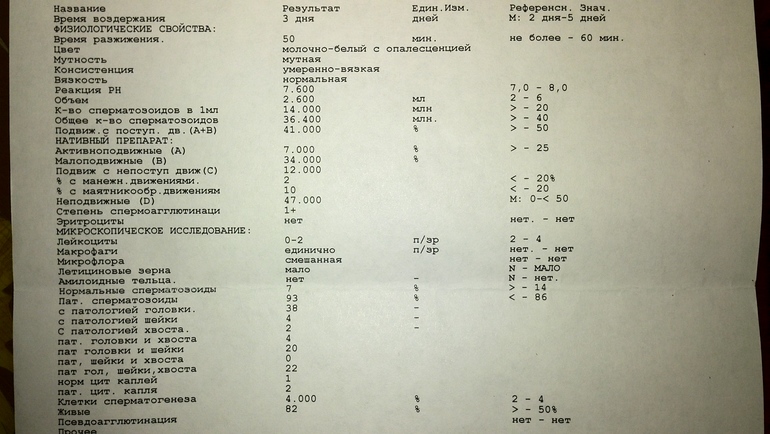 Спасибо за ответ. Скажите, какой процент норм и патологич спермов у вас по анализам? Я на грани отчаяния, так у нас и возрастной фактор, те мужу 50 мне 41(((