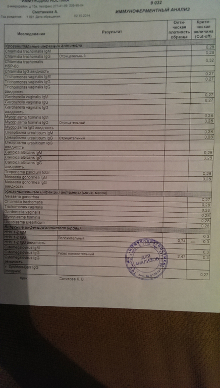 съездила я к Г,фуууф.раковых клеток не нашли,чему я безмерно рада. но нашли цитомегалавирус класс G,но при этом лейкоциты в норме.либо я дура,либо меня опять развести хотели. при этом она сказала,лечение сторого у них в клинике,и стоит это если на ваши рубли перевести то 31.400 руб. я чуть со стула там не упала....когда я спросила ведь класс G-это так называемая память крови,т.е когда им болела,а М-это болею типо на данный момент. и как может быть воспаление,если лейкоциты то в норме... на что она ответила-ну что ты всех под одну гребенку гребешь,не у всех это так...в общем вышла я шоке от опять "хорошего" Г.... жду М,сдаю ифа на ЦМВ,если положительный,то иду опять к другому Г,у меня их в запасе еще 2)))))) года 4 назад,у меня находили ЦМВ,лечились оба с мужем антибиотиками,через месяц сдала повторно М отриц,а G слабо положительно....теперь сам вопрос кто-нить беременел с этим ЦМВ? опасно ли это?нужно ли серьезное лечение