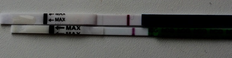Прихожу домой, не хочу в туалет, но все же иду, 5 капель получилось, мочу Бишурс...И он мне начинает вырисовывать вторую! Мамочки...Меня трясет! Это что правда? Как так? Руки трясутся, мозги не соображают...Ну это же Бишурс, вдруг врет...Через час иду мочить второй и вот она! Она же! Вторая!!!