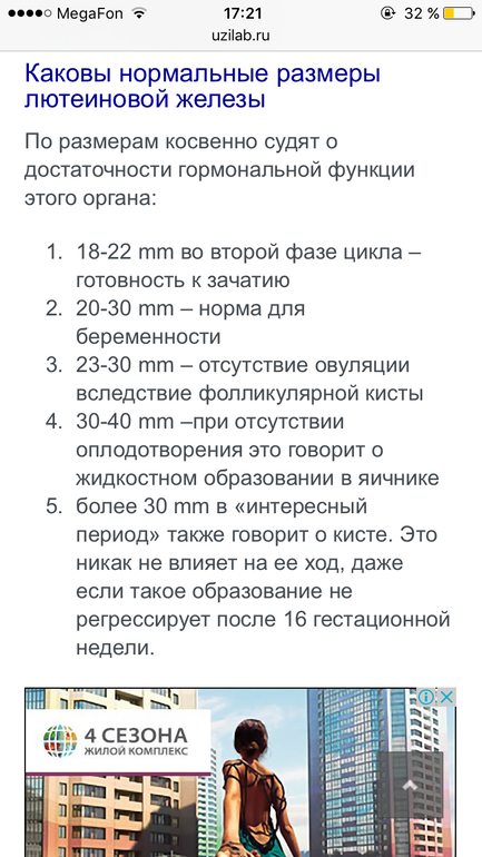 ФолликулометрияНа узи сказали желтое тело 21мм,до месячных 1 день-что это может быть?Цикл 25дн.