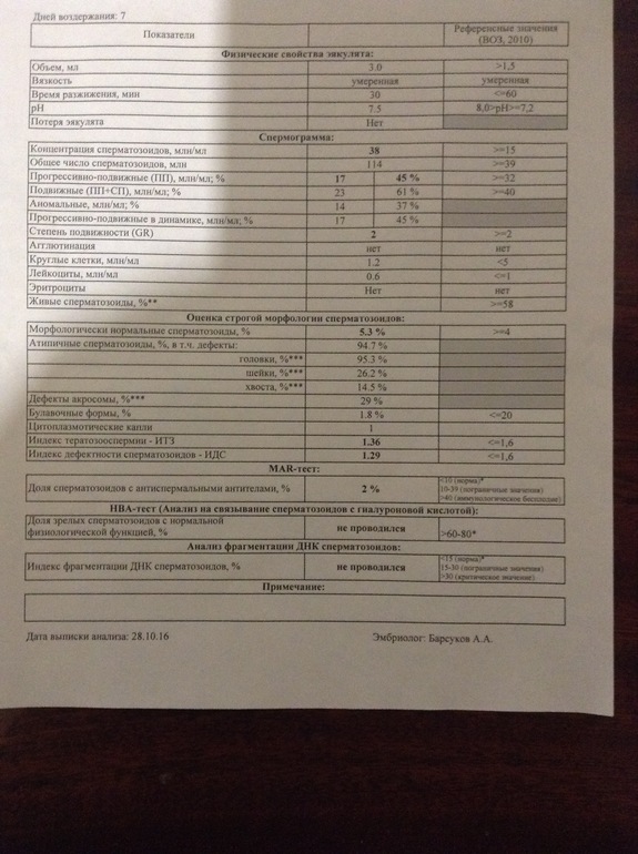 Всем привет, девочки!!!! На сайте сегодня я первый день, пришла за советами и помощью!!Ситуация такая, планируем уже больше двух лет, пили различные витаминки, но беременность так и не наступает!! По началу не зацикливались, теперь начинаю понимать что уже пора что то делать!! Еле еле уговорила мужа сдать спермограмму , и насколько я понимаю, результат у нас весьма печальный((((( он начитался в интернете что все плохо, морально подавлен, к врачу идти не хочет( у меня руки опускаются( посмотрите пожалуйста, неужели все так плохо на самом деле?