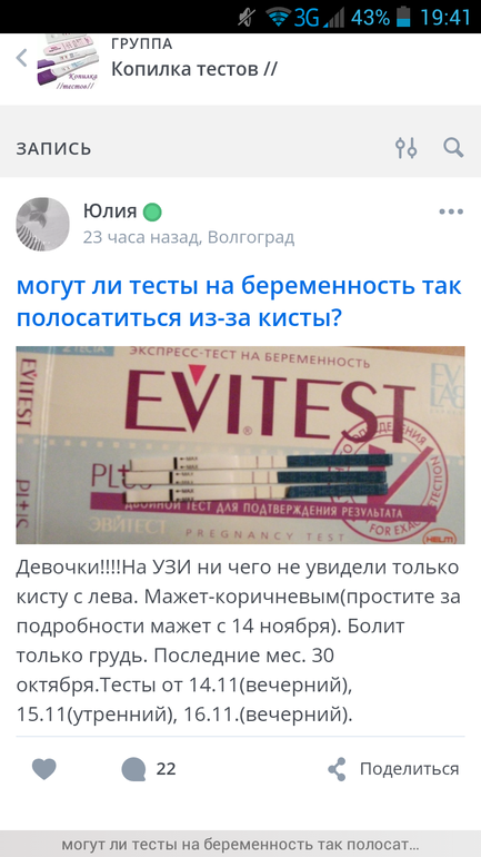 Ну так все верно овуляция у вас была перед самыми месячными, вы забеременели и на 14 д.ц и 15 дпо сделали тест и была очень бледная полоска, это ваш случай, у меня тесты тоже в середине цикла с полосками, но вб никогда не было, они просто реагировали на лг, а если у автора есть сомнения пусть хгч сдаст